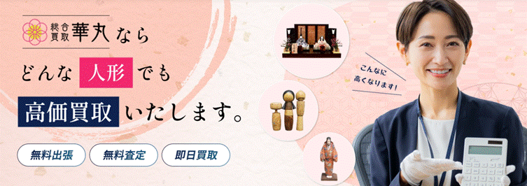 「華丸」は出張買取に特化した買取店で、五月人形をはじめ、雛人形、市松人形など人形の買取に強みを持っています。
