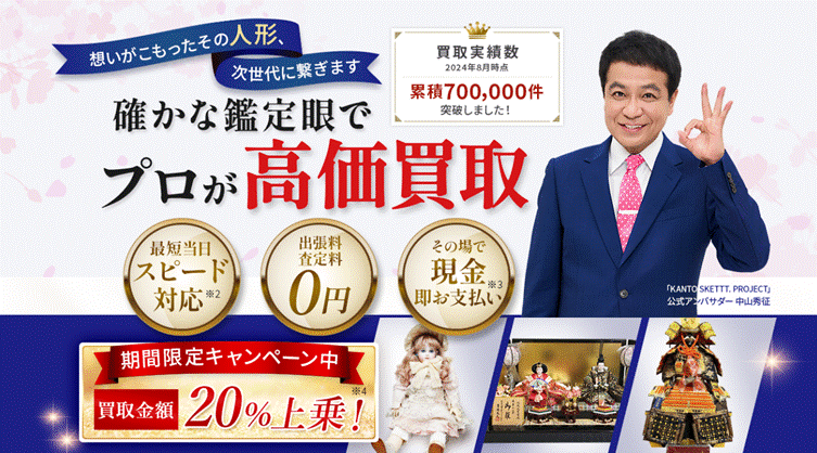 人形を専門で査定してくれるため価値を見逃さず、海外の販売ルートを持つことから高額での査定が期待できます。