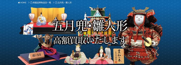 五月人形やひな人形など、日本の伝統工芸に特化。希少性によらず査定が可能です。手放したい五月人形があるなら、問い合わせてみてください。