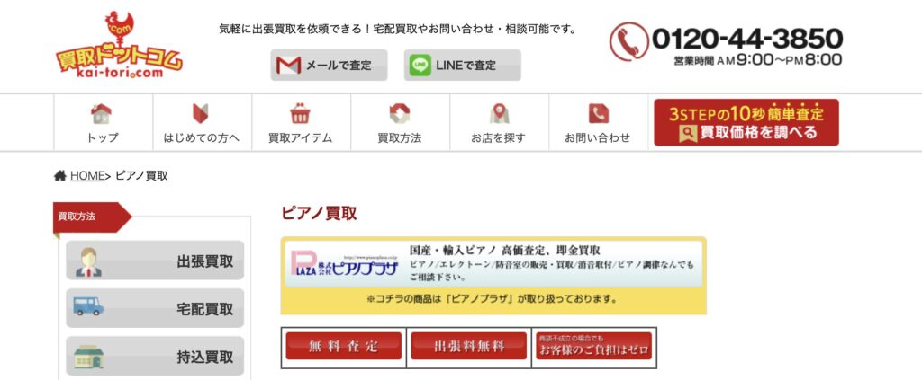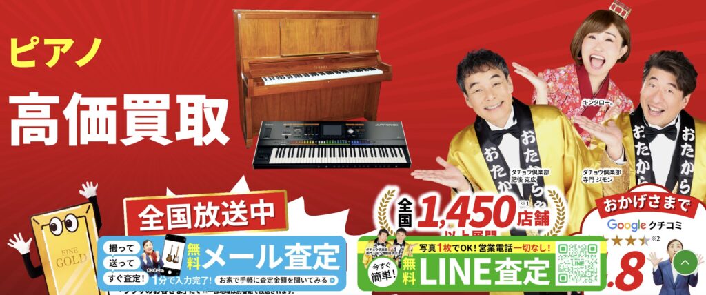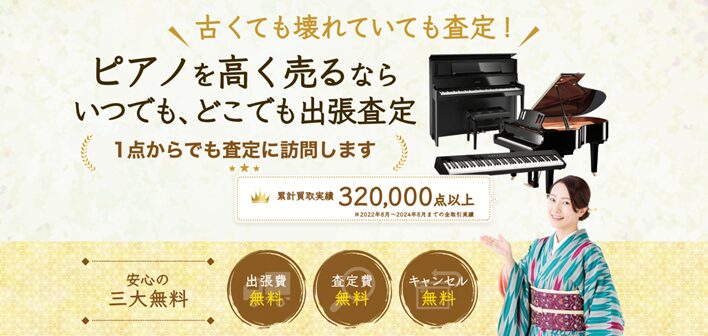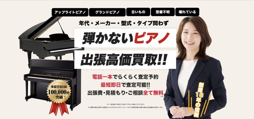 また、対応エリアが全国に広がっており、電話やWEBから簡単に査定依頼できる点も便利です。ピアノ専門業者ならではの的確な査定が期待できるのも魅力といえるでしょう。