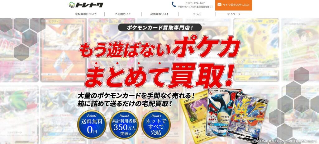 累計買取利用者300万人を突破した信頼性の高いサービスで、ポケカ専門の査定士が在籍しているため正確な価値判定が可能です。
