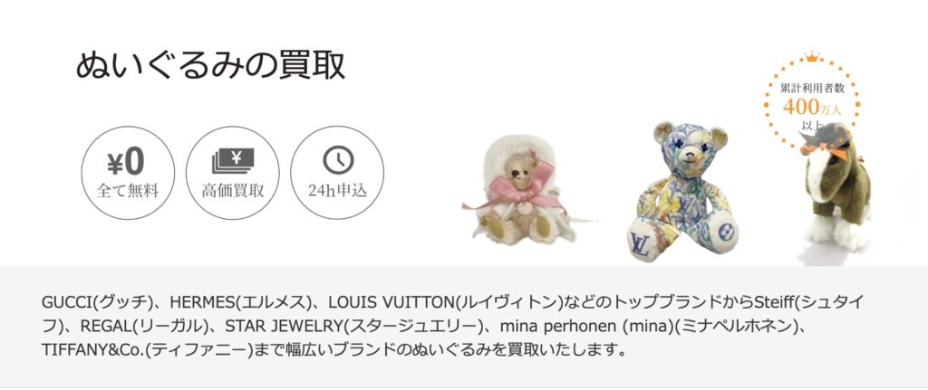 ぬいぐるみの買取において信頼できて、高く買取をしてくれると評判の業者のみを厳選しています。