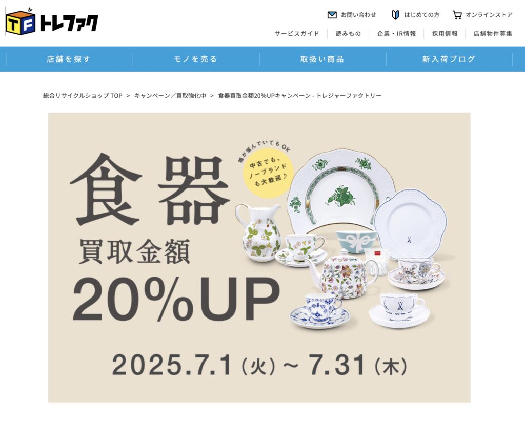 - 上記に当てはまる最もおすすめの食器買取業者は「トレジャーファクトリー」