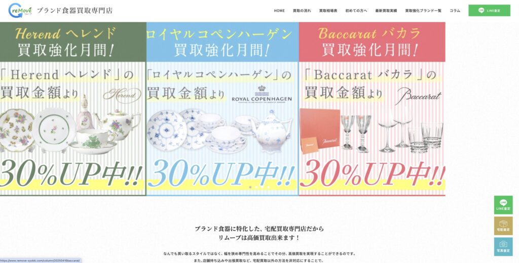 リムーブはブランド食器に特化した宅配買取専門店で、食器専門の高価買取を実現しています。