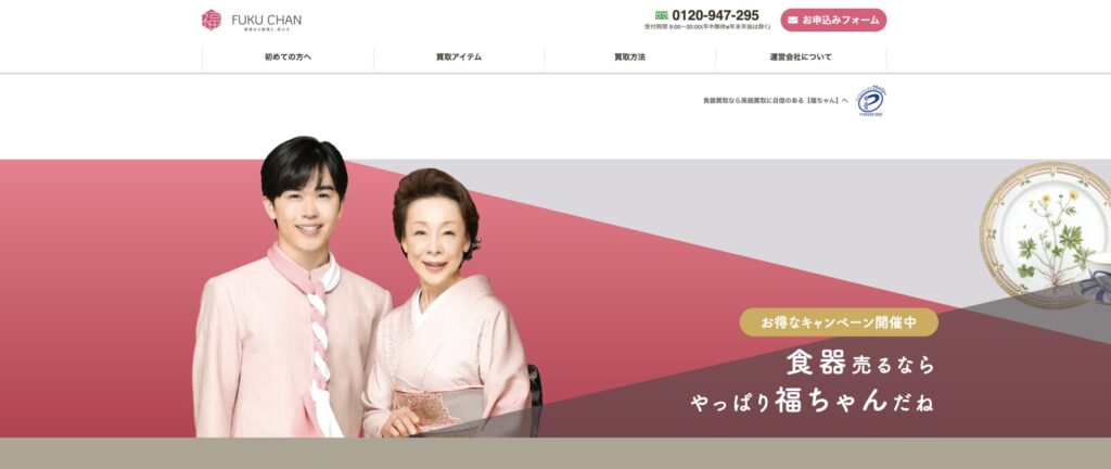 福ちゃんは中尾彬さん・池波志乃さんのCMでおなじみの買取専門店で、食器買取において高い評価を得ています。