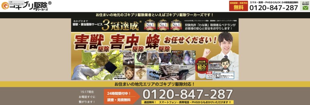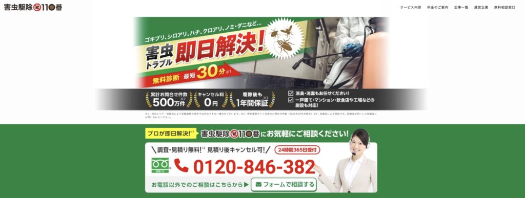 - 上記に当てはまる最もおすすめのゴキブリ駆除業者は「害虫駆除110番」