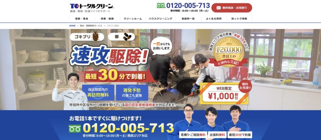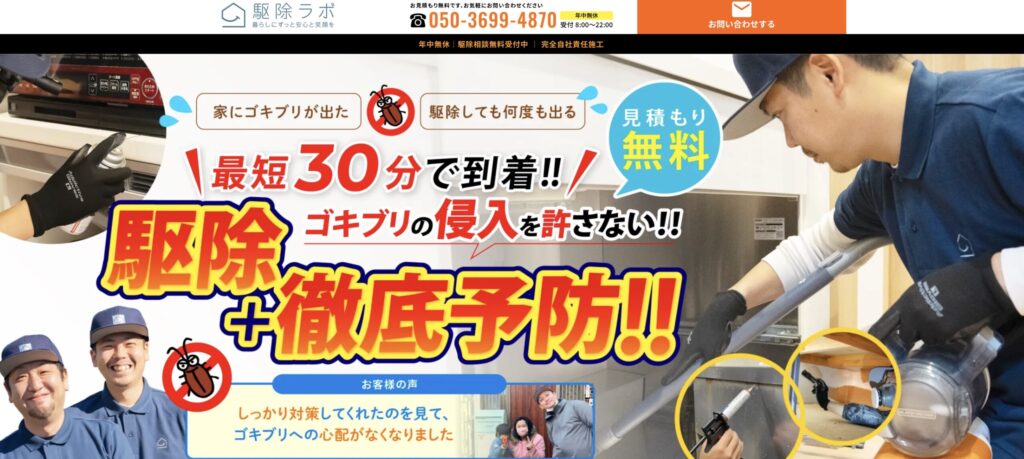 害虫駆除110番は現地調査や見積もり無料、追加料金なしで安心して依頼できるゴキブリ駆除業者。