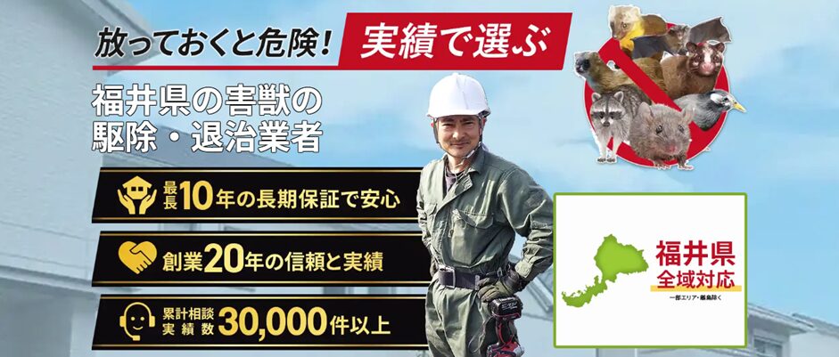 福井県で害獣・害虫の被害に悩んでいる方にとって、業者選びはその後の安心・安全な生活を左右する大きな分かれ道です。