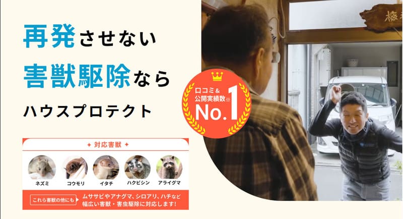 ・害獣駆除で最もおすすめの業者は「ハウスプロテクト」