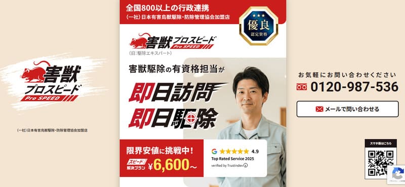 スズメバチやネズミなど、放置すると被害が拡大するケースでは、迅速な対応が被害を最小限に留めカギです。
