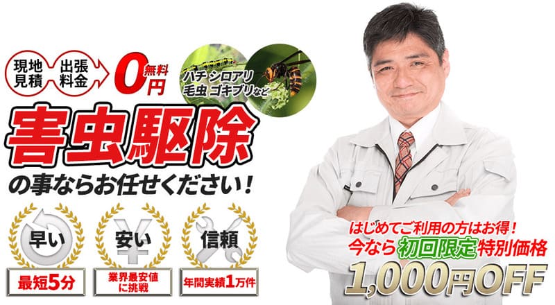 特にハチの駆除など緊急性が高いケースでは、最短30分〜1時間で駆けつけてくれる業者もあります。