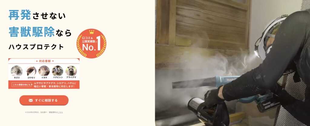 • 上記に当てはまる最もおすすめのハクビシン駆除業者は「ハウスプロテクト」。