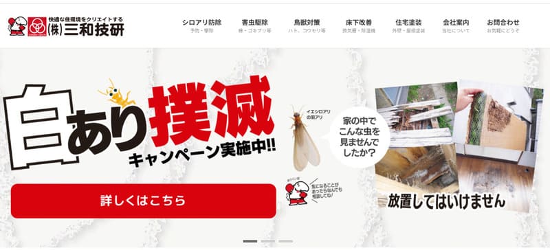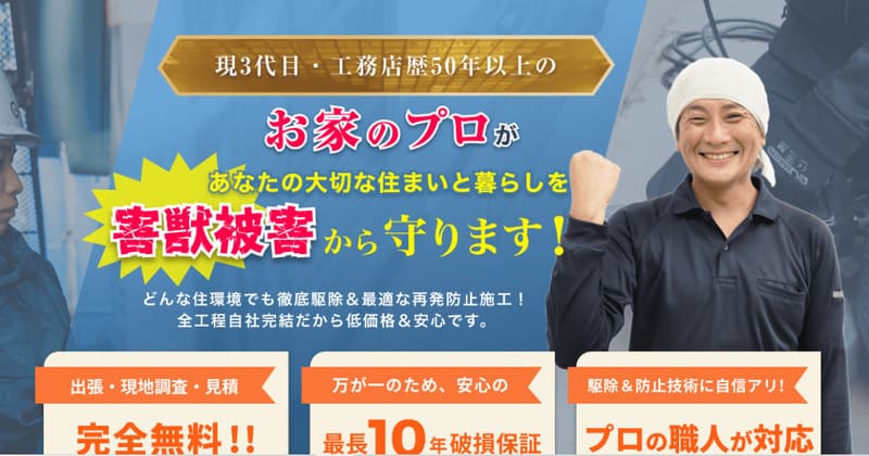 リフォーム会社を母体としているため、駆除だけでなく傷んだ建物修繕や再発防止措置まで対応してくれます。