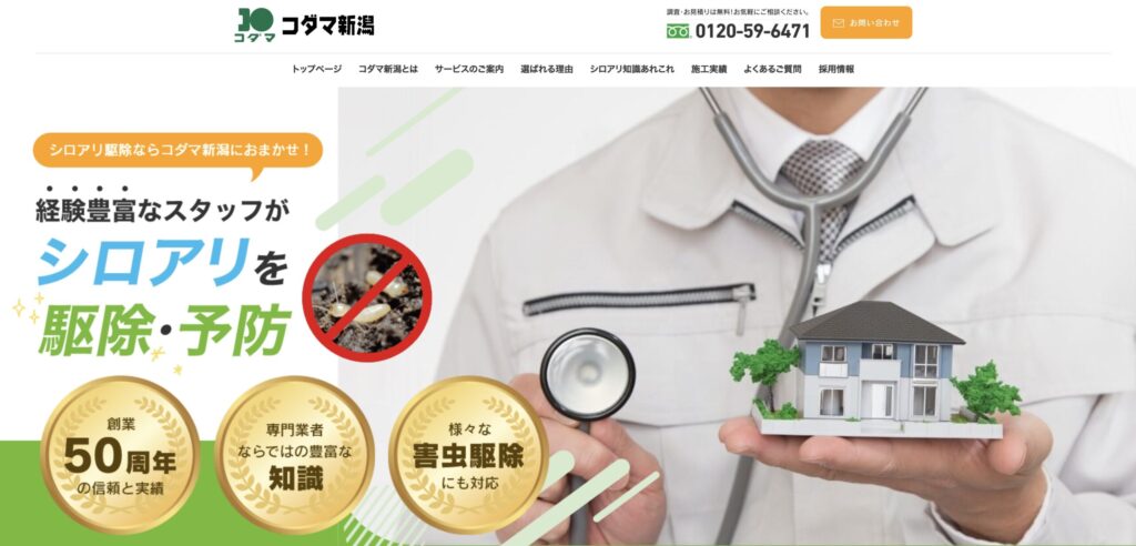 | 対応害獣・害虫 | シロアリ、コウモリ、ネズミなど |