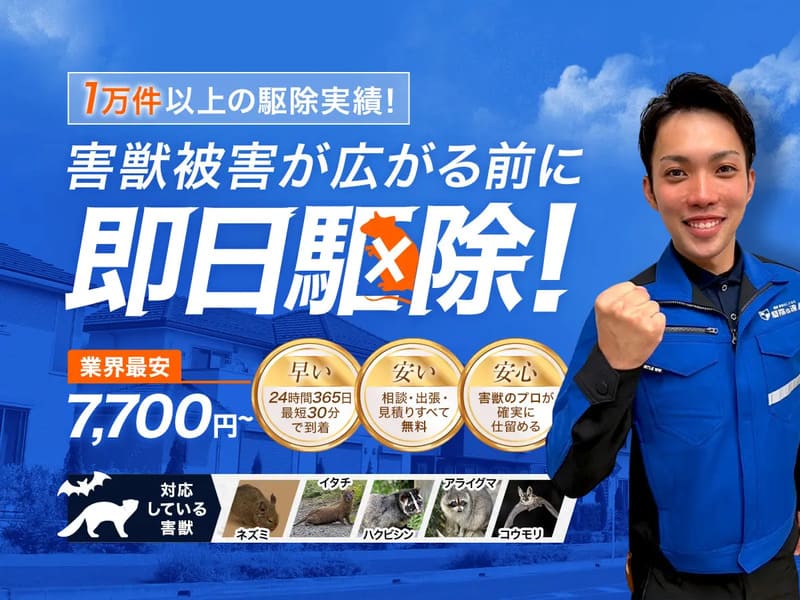 口コミでもスタッフの丁寧な対応や技術力の高さが評価されており、駆除から再発防止までトータルで任せられます。
