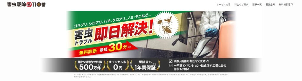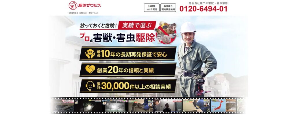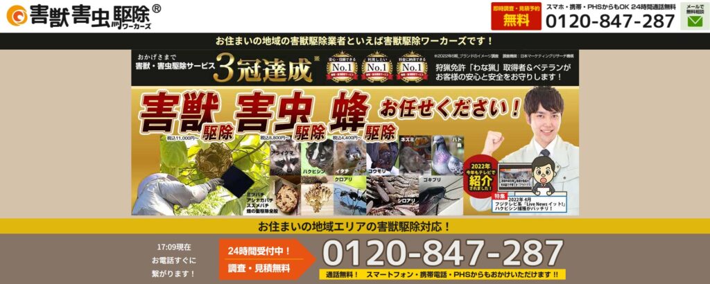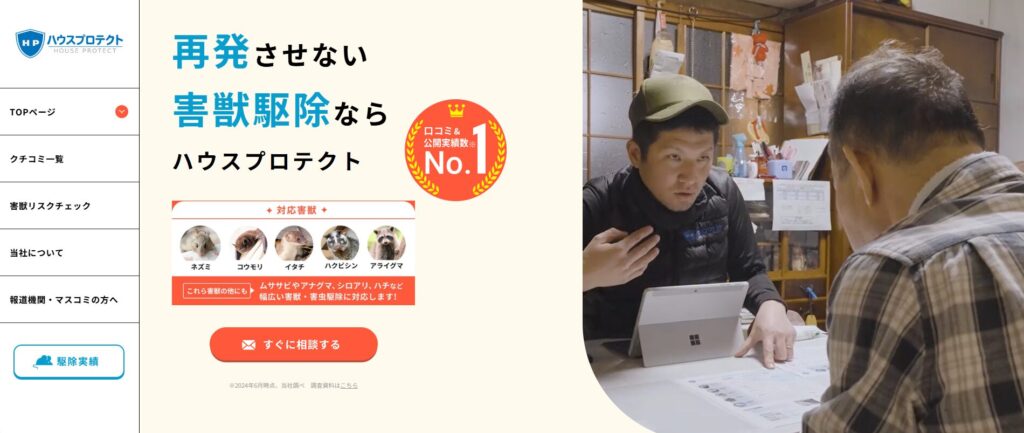 - 上記に当てはまる最もおすすめの害獣・害虫駆除業者は「害獣駆除110番」
