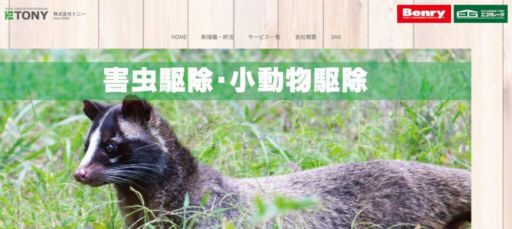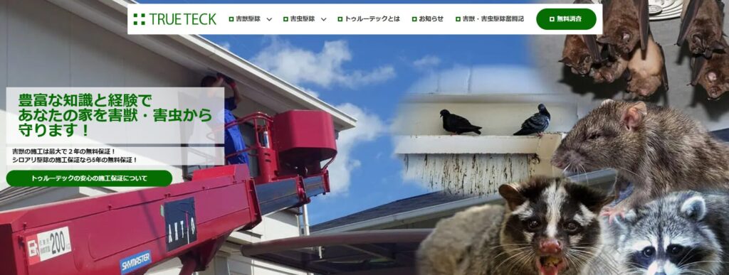 ハクビシン・ネズミ・コウモリ・イタチ・アライグマなどの害獣から、トコジラミ・シロアリなどの害虫まで幅広い駆除に対応している総合的な駆除業者といえるでしょう。