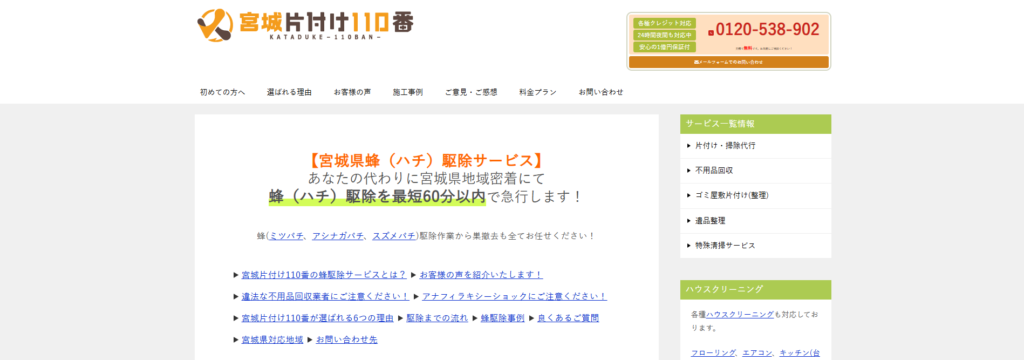 宮城片付け110番やムシプロテック、害獣駆除110番などは24時間365日の受付対応を謳っていますが、実際の施工は営業時間内となることが一般的です。