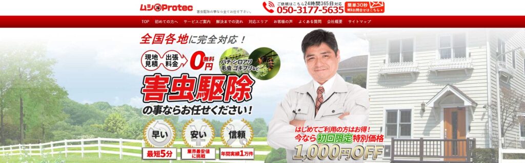 24時間365日受付対応のコールセンターを完備しており、最短即日での駆除作業も可能なスピーディーな対応が特徴となっています。