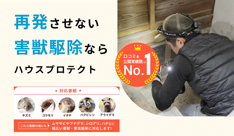 住宅構造を理解しているハウスプロテクトなら、価値を落すことなく害獣を駆除、再発を防止してくれます。