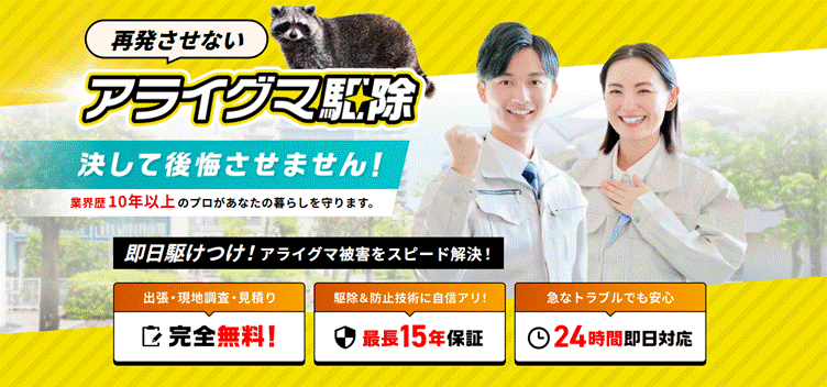 自力での対応は困難である上、法律違反や安全面のリスクもあるでしょう。実績があり、保証制度が整った業者なら、調査から駆除・再発防止まで一貫して対応してくれるため、安心して任せられますよ。