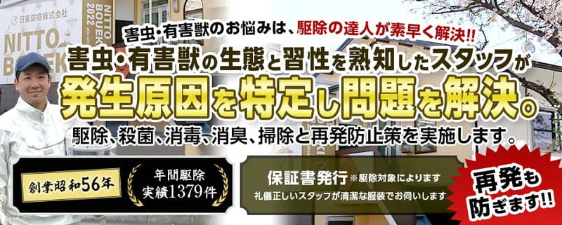 駆除の品質はGoogle口コミでも高評価を獲得しており、お客様ファーストの姿勢と、日本有害鳥獣駆除・防除管理協会加盟による技術基準の高さも魅力です。