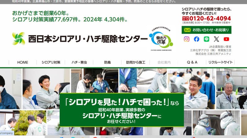 日本有害鳥獣駆除・防除管理協会への加盟により、技術・薬剤の安全性にも信頼をおけます。