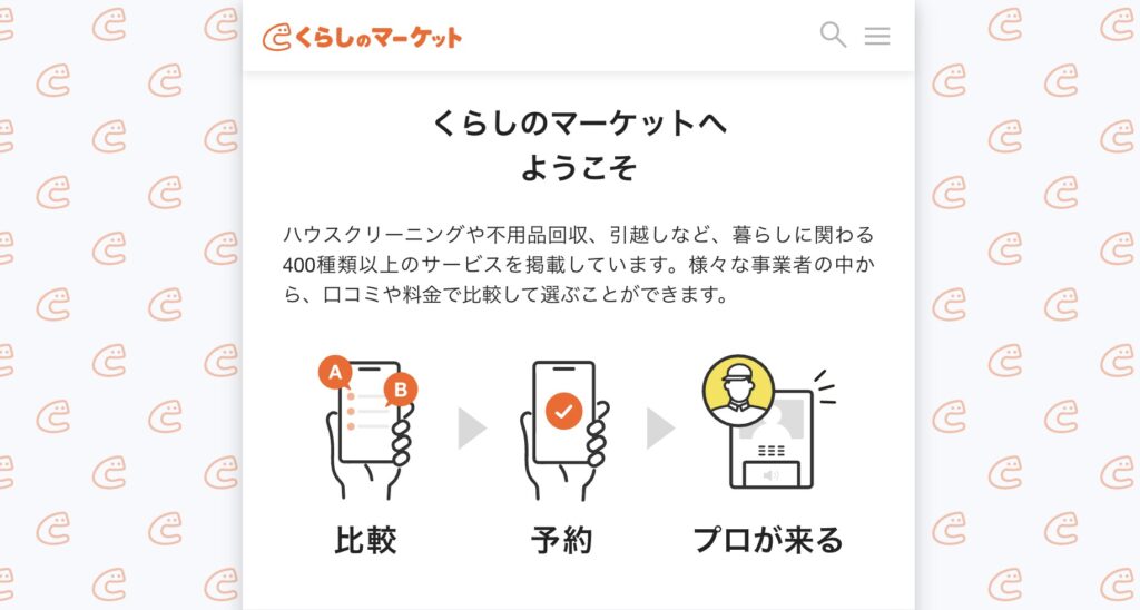 くらしのマーケットは、全国10万店以上の事業者が登録する日本最大級のサービス比較プラットフォームです。ダニ駆除分野では78件の専門業者が登録しており、料金や口コミで簡単に比較できる仕組みが特徴といえるでしょう。