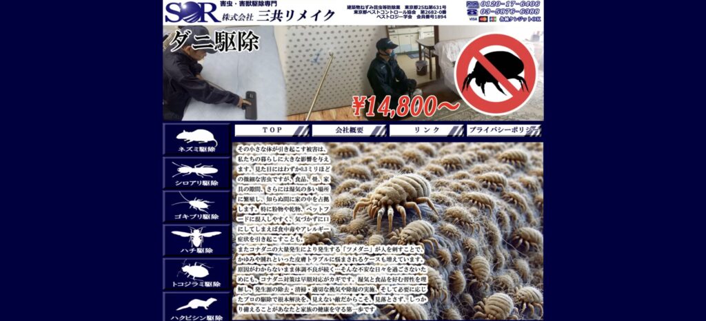 - 上記条件を満たす最もおすすめのダニ駆除業者は「衛生害虫110番」