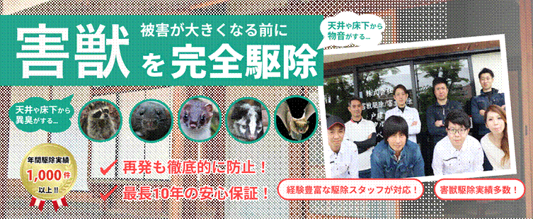 対応害獣・害虫アライグマ・ハクビシン・イタチ・モグラ・害鳥・コウモリ・ネズミなど