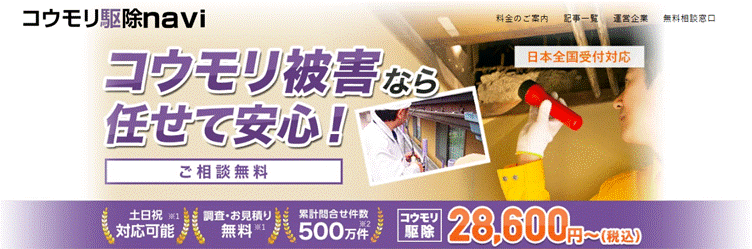 さらに駆除や予防にかかる費用まで、わからないことや不安なことをしっかり解決しつつ依頼できる点がおすすめポイントです。