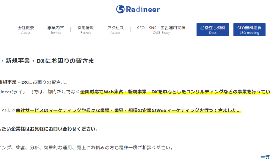 合同会社Radineerは2014年1月24日に東京都豊島区で設立され、企業向けWebマーケティング支援事業を中核として事業を展開しています。
