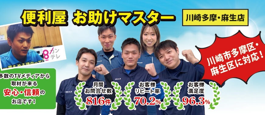 2025年7月に神奈川県川崎市多摩区・麻生区に「便利屋お助けマスター川崎多摩・麻生店」がオープンしました。