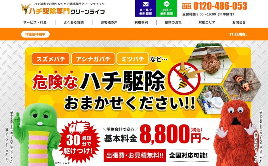 ハチ駆除専門クリーンライフの特徴とサービス内容