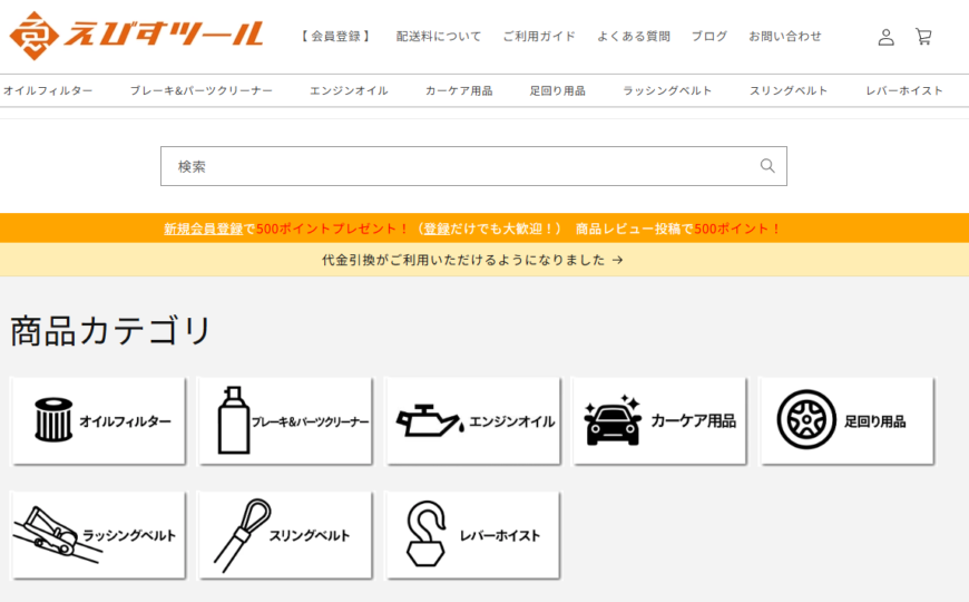 自動車関連用品や物流現場用品を専門に取り扱うオンラインショップ。