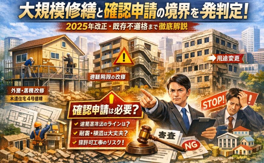大規模修繕と確認申請の境界を一発判定!2025年改正や既存不適格まで網羅して徹底解説 | ビズフォース